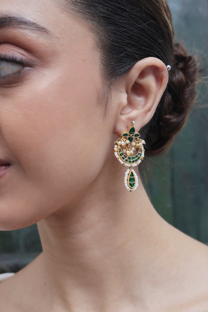 Turn heads with the timeless elegance of our Amrit Pushp – a true celebration of royal craftsmanship and traditional charm. Handcrafted with intricate detail, this stunning piece features a pure gold-plated finish, embedded with delicate kundan work, and bordered with lustrous mini pearls. The pink meenakari dome adds a vibrant pop of heritage color, completing the regal look. Gentle on sensitive skin, Long-lasting shine, Stays beautiful, wear after wear, Perfect for weddings, festivals, or any occasion where you want to stand out with grace.