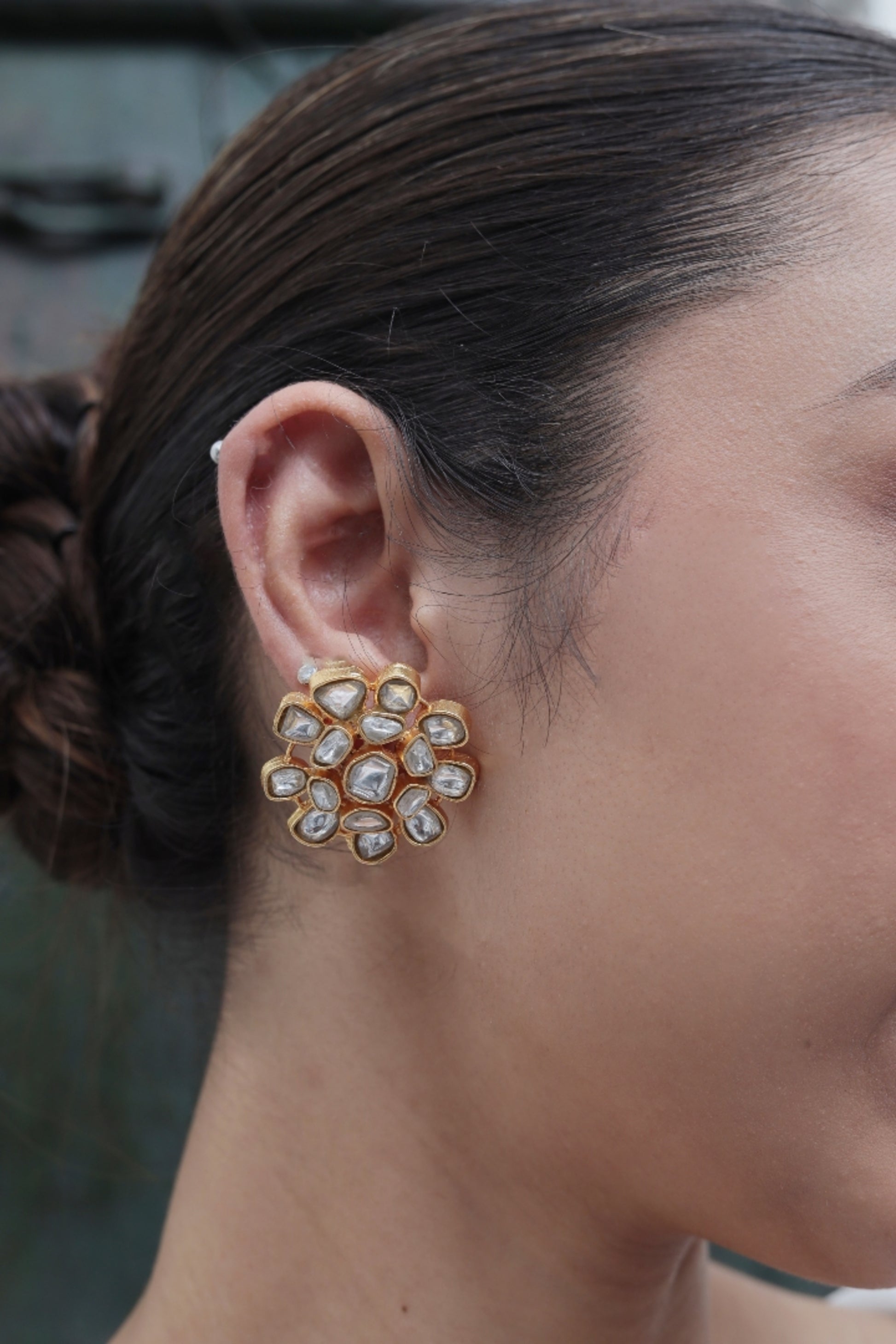 These exquisite Jadau Earrings are crafted with intricate floral detailing, inspired by the elegance of a blooming lotus. Made in pure gold plating, they are anti-allergic and designed