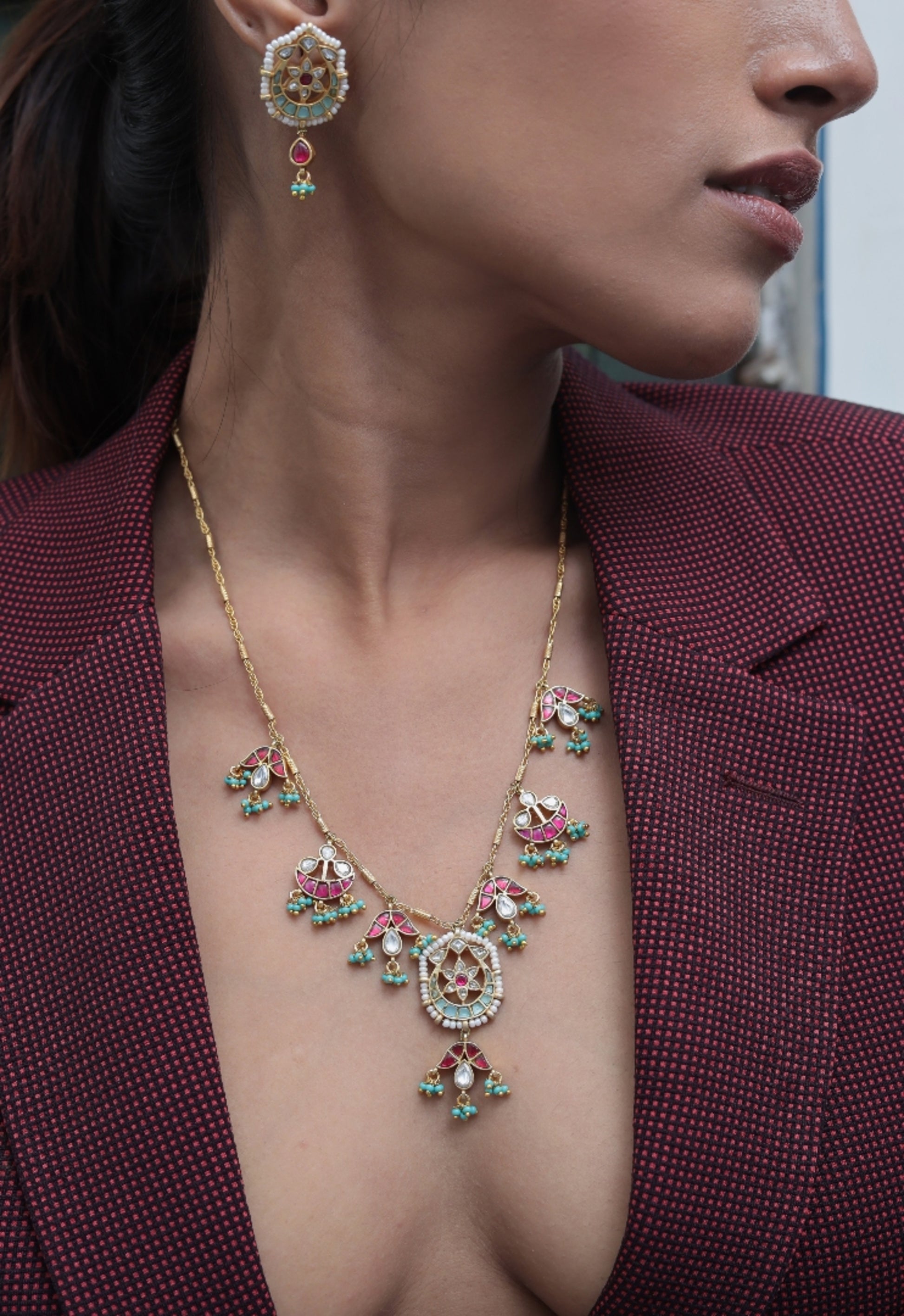 These exquisite Jadau sets are crafted in high-quality brass alloy with pure gold plating, designed to bring a royal touch to your look. Each piece is anti-tarnish, anti-allergic, and guaranteed to never go black, ensuring lasting shine and comfort. Perfect for weddings, festive occasions, and timeless styling, these masterpieces blend traditional elegance with modern durability.