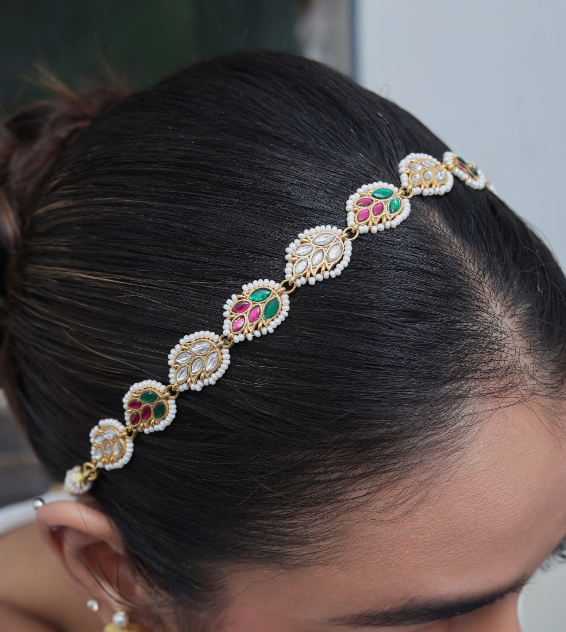 Elevate your traditional look with our exquisite collection of handcrafted Jadau Sheeshpattis, a perfect blend of heritage and elegance. Each piece is meticulously made from pure gold-plated brass alloy, offering the regal charm of fine jewelry while being lightweight and comfortable for extended wear. Designed for modern sensibilities with a nod to timeless tradition, these sheeshpattis are anti-allergic and anti-tarnish, ensuring both skin safety and long-lasting shine. Whether adorned with floral motifs, celestial designs, or colorful meenakari patterns, every detail is a tribute to the grandeur of royal Indian craftsmanship. Perfect for weddings, festive occasions, or heirloom-style styling – these headpieces are more than just accessories; they’re crown jewels for your crowning moments.
