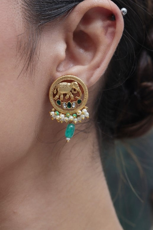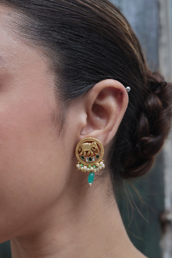 These exquisite Jadau Earrings are crafted with intricate floral detailing, inspired by the elegance of a blooming lotus. Made in pure gold plating, they are anti-allergic and designed