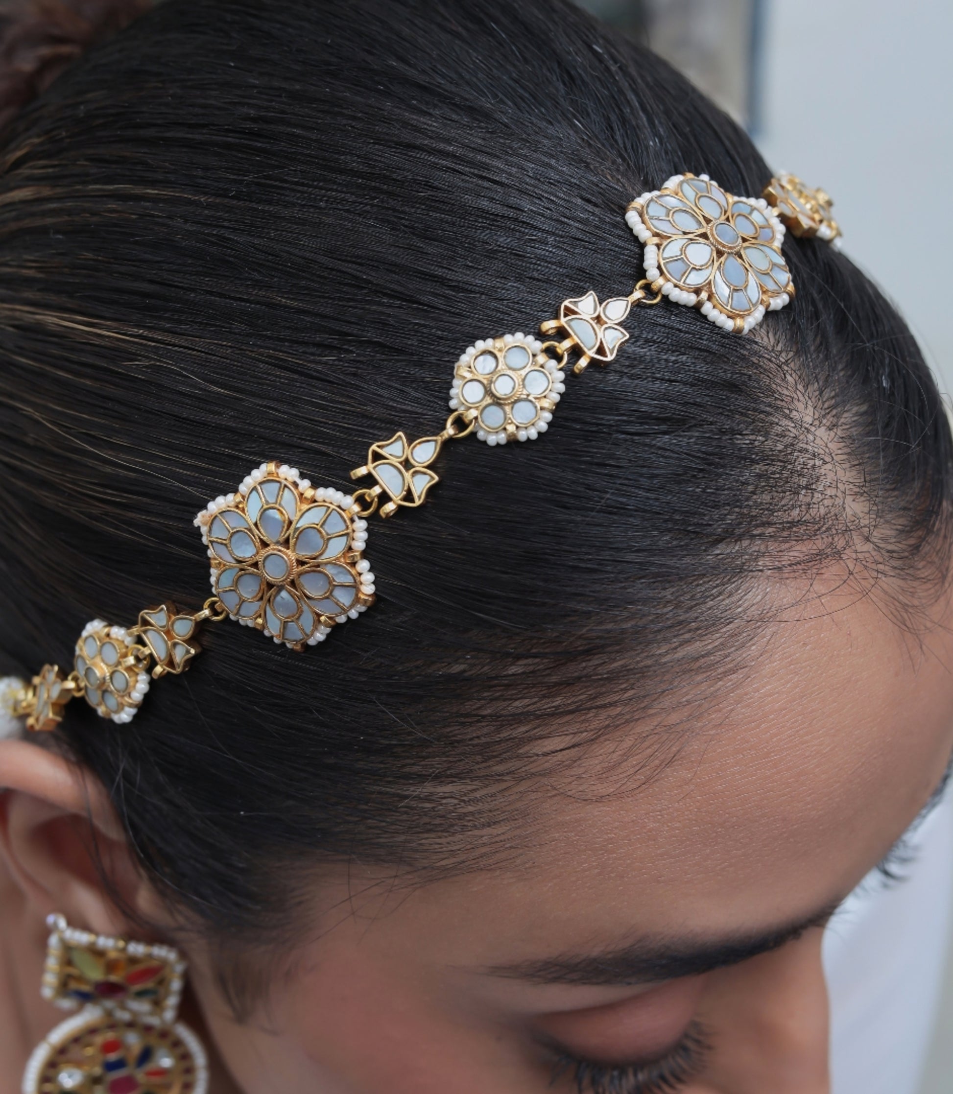 Elevate your traditional look with our exquisite collection of handcrafted Jadau Sheeshpattis, a perfect blend of heritage and elegance. Each piece is meticulously made from pure gold-plated brass alloy, offering the regal charm of fine jewelry while being lightweight and comfortable for extended wear. Designed for modern sensibilities with a nod to timeless tradition, these sheeshpattis are anti-allergic and anti-tarnish, ensuring both skin safety and long-lasting shine. Whether adorned with floral motifs, celestial designs, or colorful meenakari patterns, every detail is a tribute to the grandeur of royal Indian craftsmanship. Perfect for weddings, festive occasions, or heirloom-style styling – these headpieces are more than just accessories; they’re crown jewels for your crowning moments.